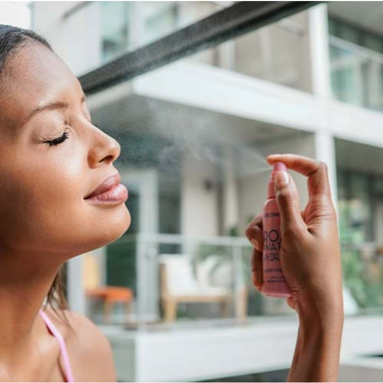 Sets Makeup: Frownies Rose Water Hydrator Spray can be used as a makeup setting spray to help lock in makeup and give the skin a dewy, glowing finish. Simply spritz it lightly over the face after applying makeup to help set and prolong its wear.