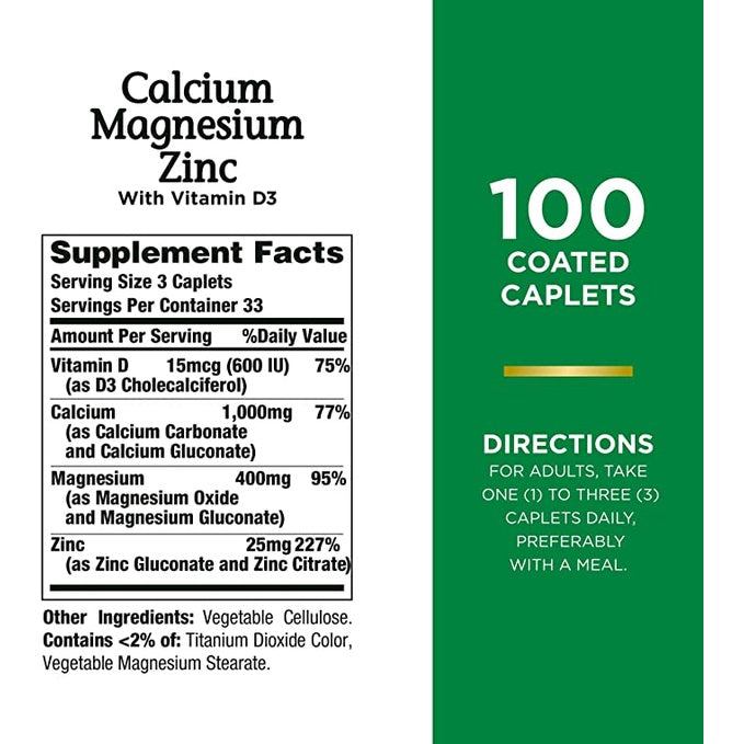 Nature's Bounty Calcium Magnesium Zinc with Vitamin D3 combines several essential nutrients that play important roles in bone health, muscle function, and overall well-being. Here are some potential benefits associated with this supplement: