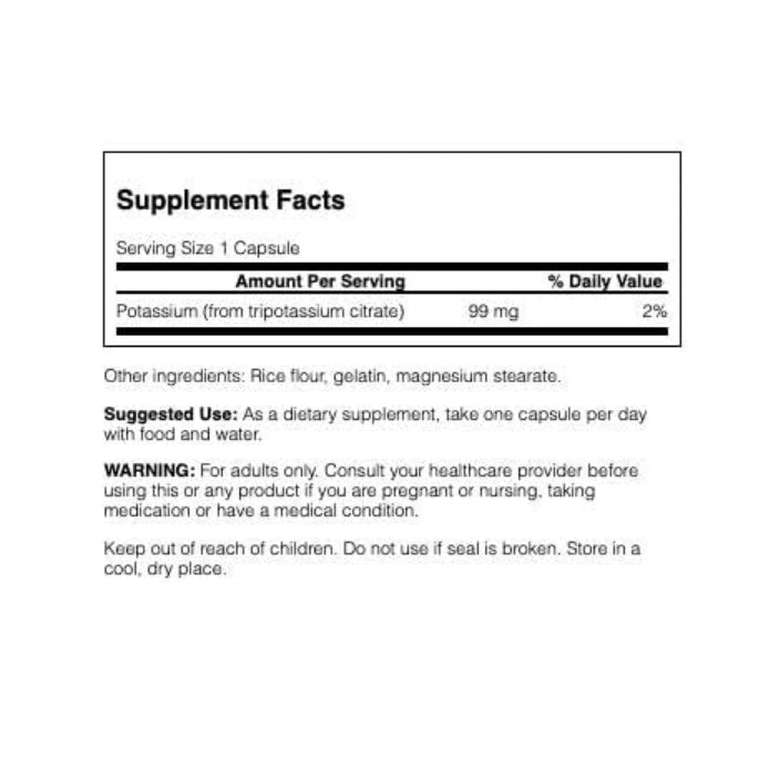 Quality and Safety: Swanson Potassium Citrate is produced according to high-quality standards and undergoes rigorous testing to ensure purity, potency, and safety.