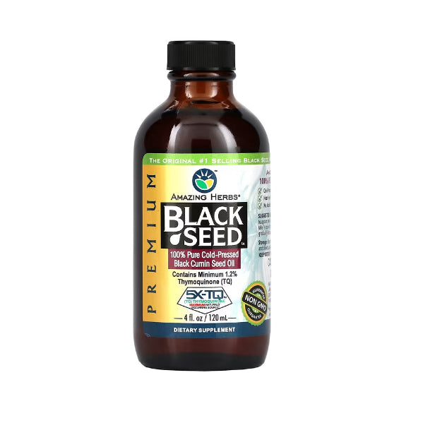 USAOnhand| Amazing Herbs, Black Seed, 100% Pure Cold-Pressed Black Cumin Seed Oil, 4 fl oz (120 ml)