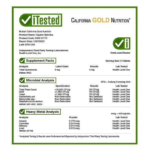 California Gold Nutrition Organic Spirulina is a dietary supplement containing 500 mg of organic spirulina per tablet. Here are some potential benefits associated with this supplement: