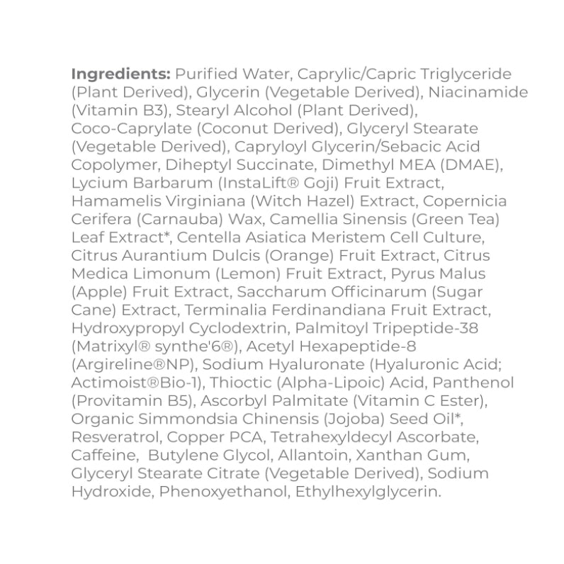 Antioxidant Protection: The formula is enriched with potent antioxidants, such as green tea extract and vitamins C and E, which help protect the skin from environmental damage and oxidative stress. Antioxidants neutralize free radicals, which can cause premature aging and skin damage, helping to maintain a healthy and radiant complexion.