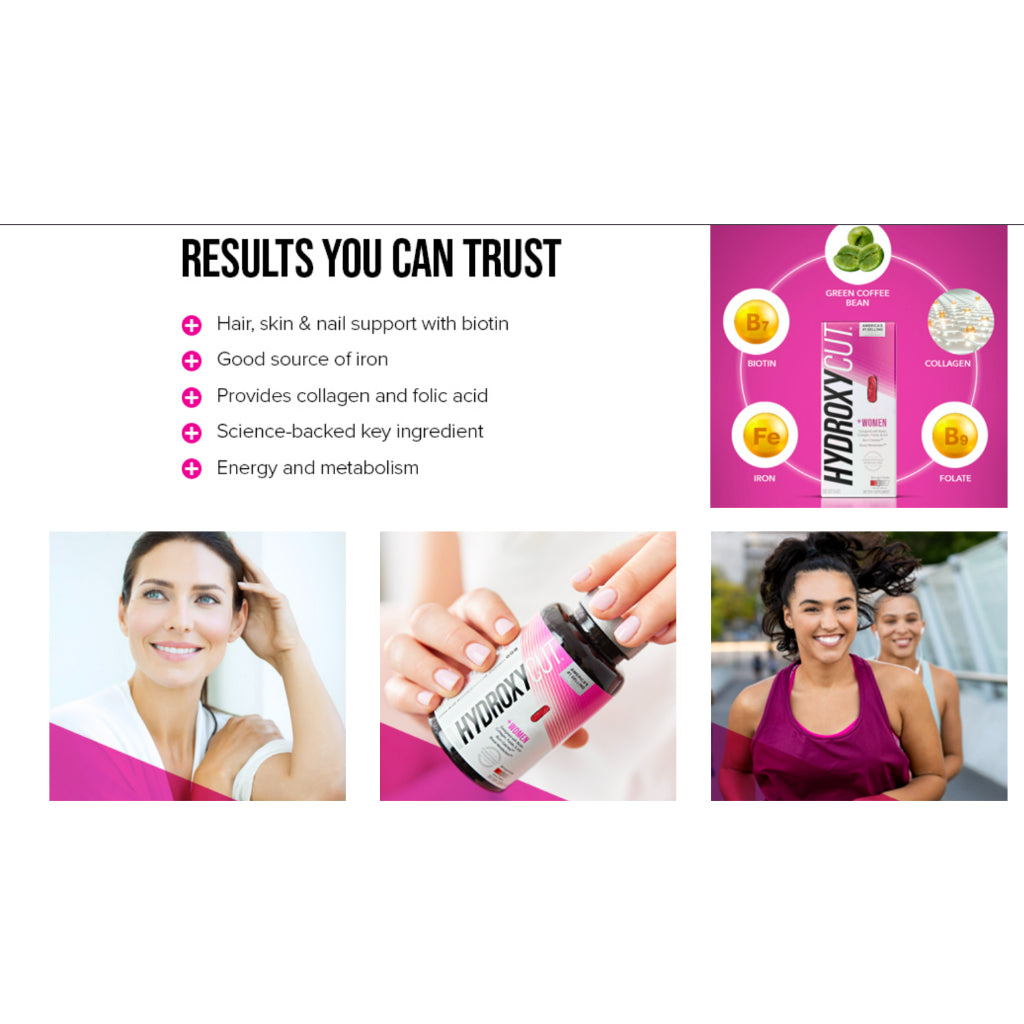 Hydroxycut + Women Pills with Biotin & Collagen is a dietary supplement designed to support hair, skin, and nail health, in addition to potentially aiding in weight management. Here are some potential benefits of using this product: