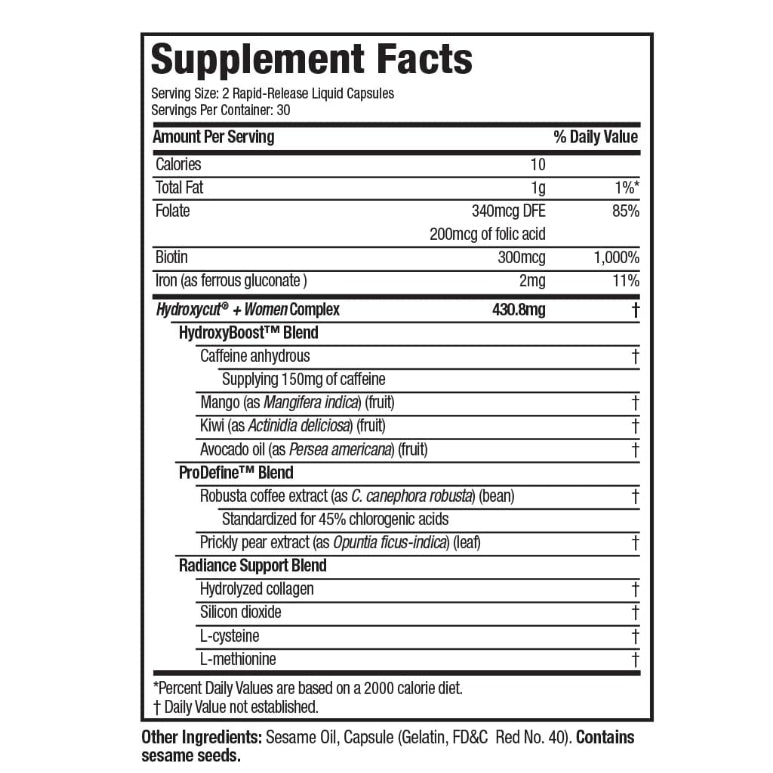 Potential Weight Management Support: While the primary focus of Hydroxycut + Women Pills may be on hair, skin, and nail health, Hydroxycut is a brand known for its weight management supplements. Some formulations may contain ingredients that could potentially support weight loss efforts, such as caffeine or green coffee extract. However, it's essential to check the specific ingredients list of this product to determine if it includes any weight management ingredients.