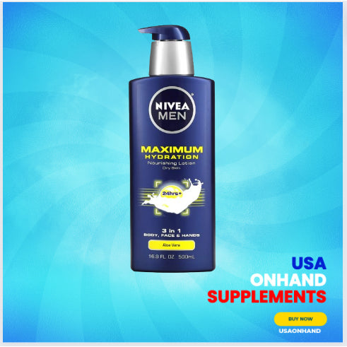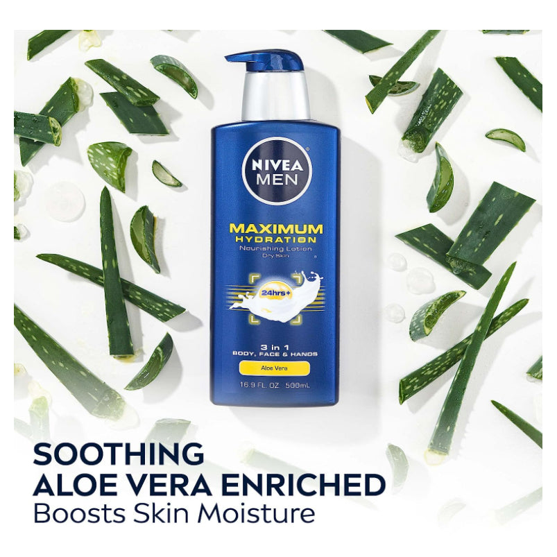 USAOnhand| Nivea, Men, Maximum Hydration, 3-in-1 Nourishing Lotion, Aloe Vera, 16.9 fl oz (500 ml)