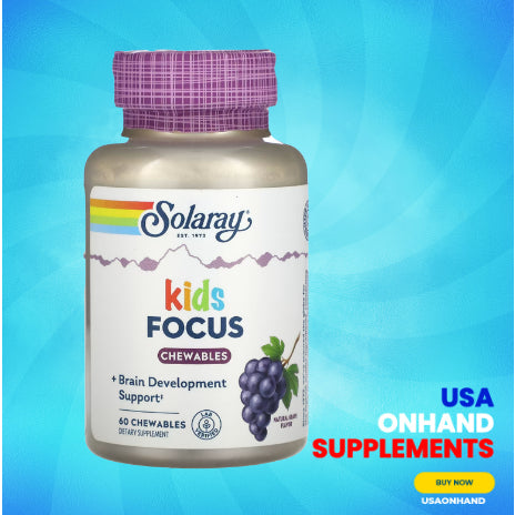 Supports Overall Brain Health: In addition to promoting focus and concentration, Solaray Kids Focus Chewables may support overall brain health and development in children. Ingredients like phosphatidylserine and omega-3 fatty acids (such as DHA and EPA) are essential for the structural integrity of brain cell membranes and may support optimal brain function throughout childhood and adolescence.