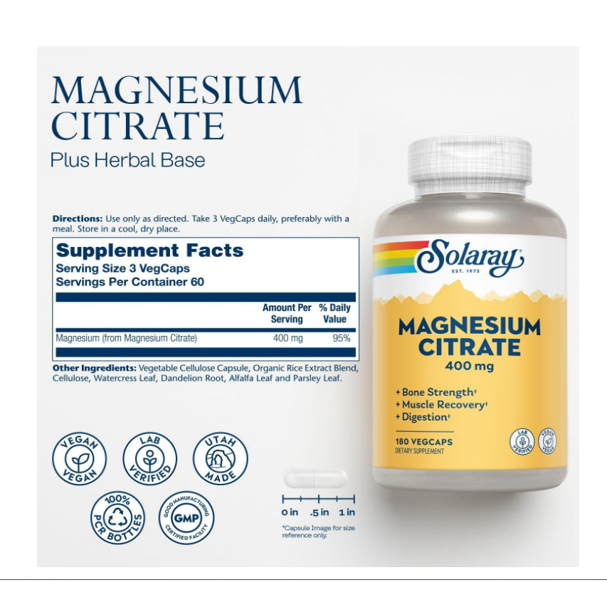 USAOnhand| Solaray, Magnesium Citrate, 133 mg, 180 VegCaps | Magnesium Glycinate